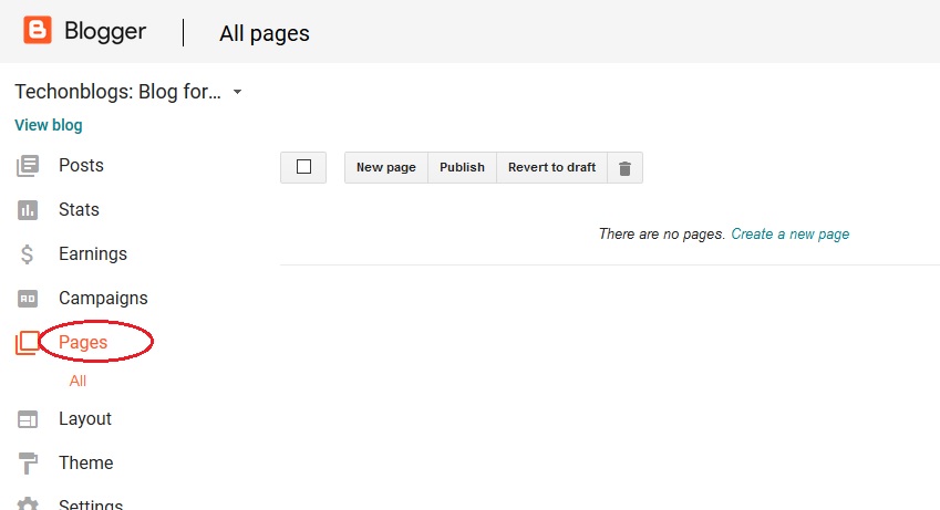 - Log in to the Blogger blog you are wanting to add pages to and click on the “Pages” link.