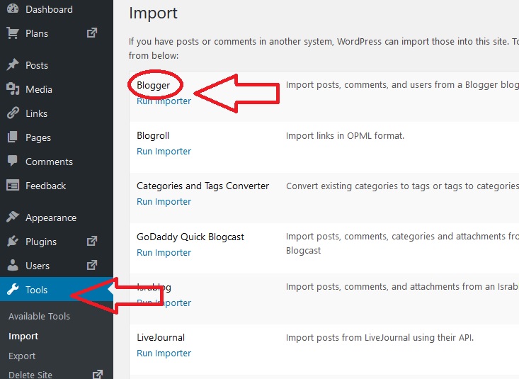 - Now go to your WordPress admin and visit Tool>Import. On import page click on Blogger.